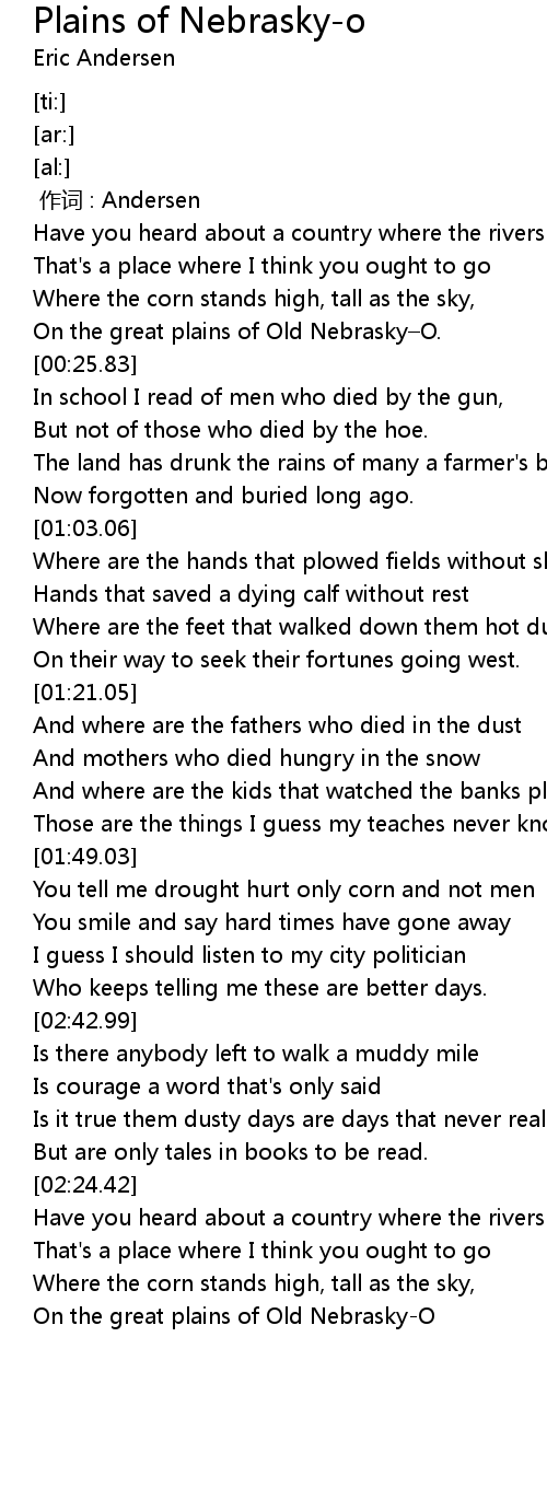 | [03:06.22] | On the great plains of Old NebraskyO |