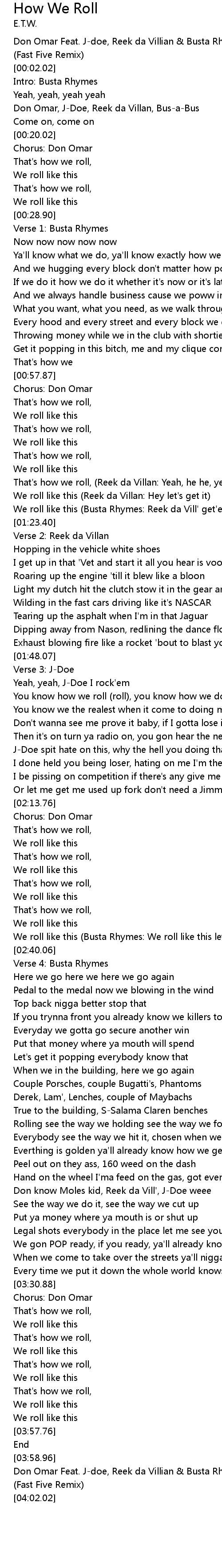 We roll like this (Busta Rhymes: Reek da Vill' get'em) |