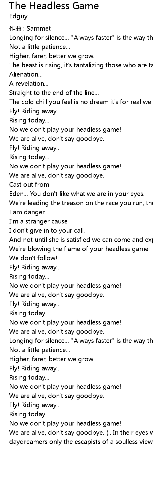 | Song | The Headless Game |