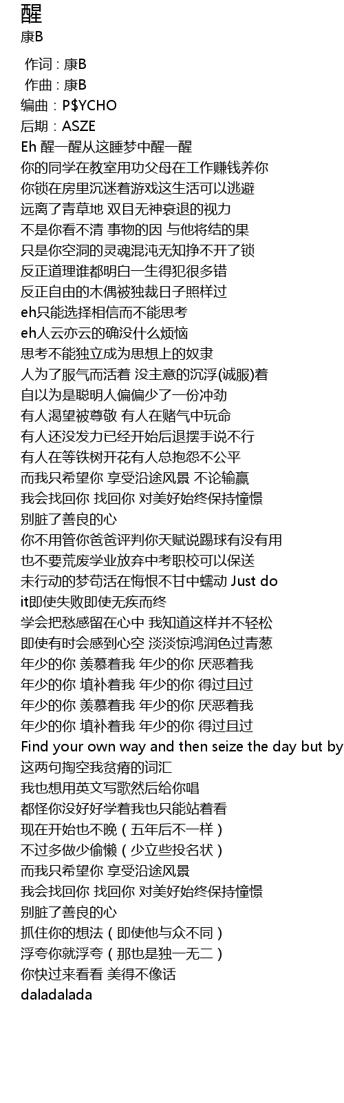 | [00:00.000] | 作词 : 康B |