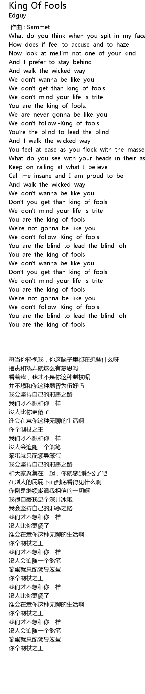 | [02:18.996] | You are the king of fools |