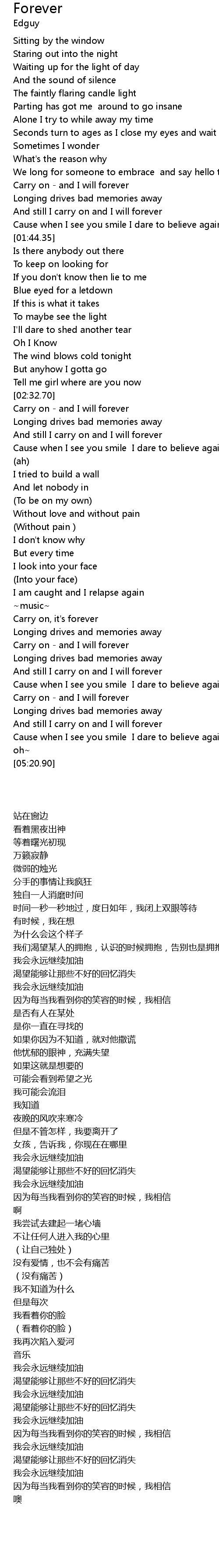 Carry on - and I will forever |