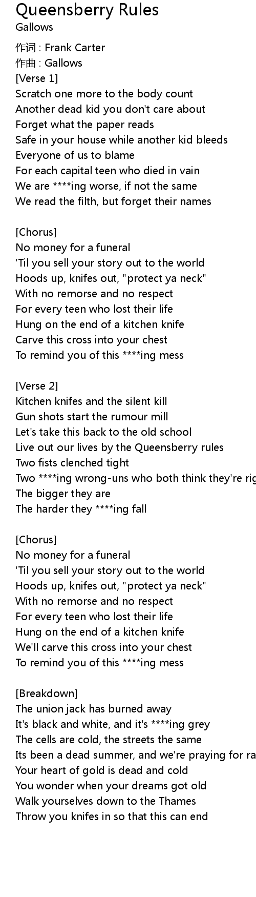 | Live out our lives by the Queensberry rules | |