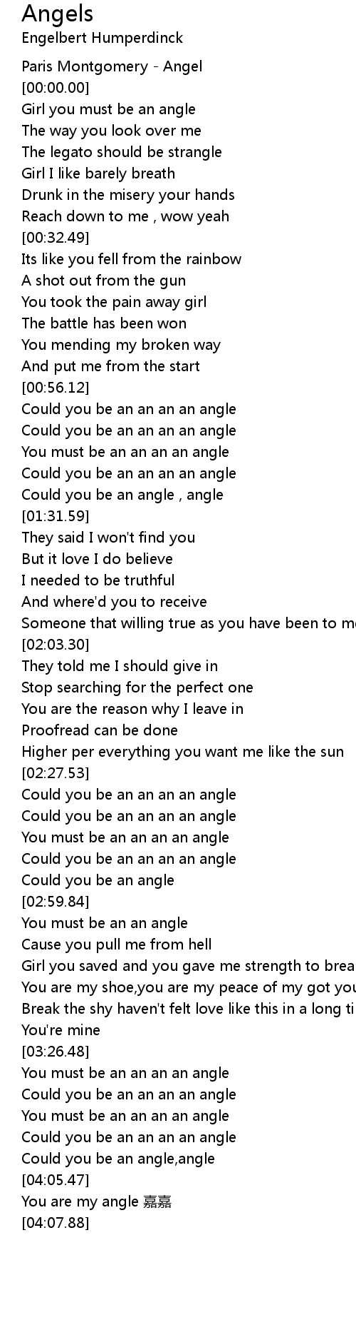 | [03:39.74] | You must be an an an an angle |