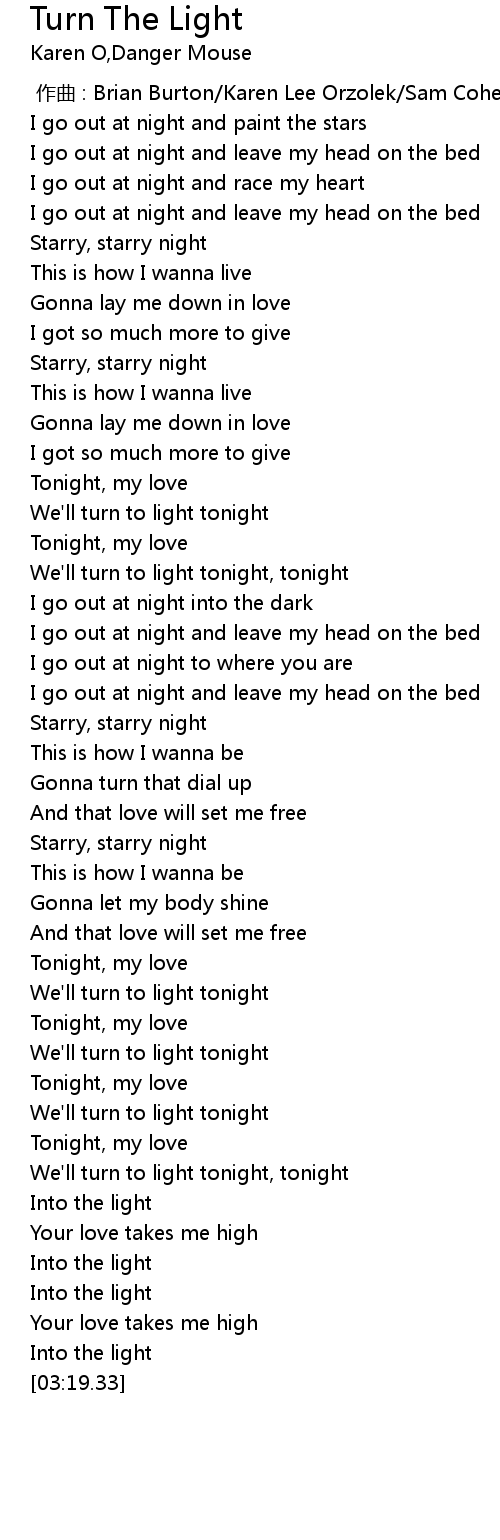 | [02:11.40] | We'll turn to light tonight |