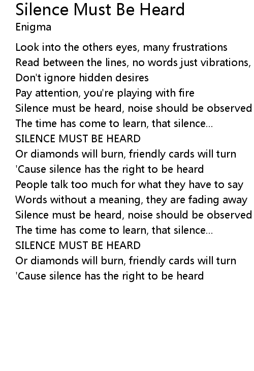 'Cause silence has the right to be heard |