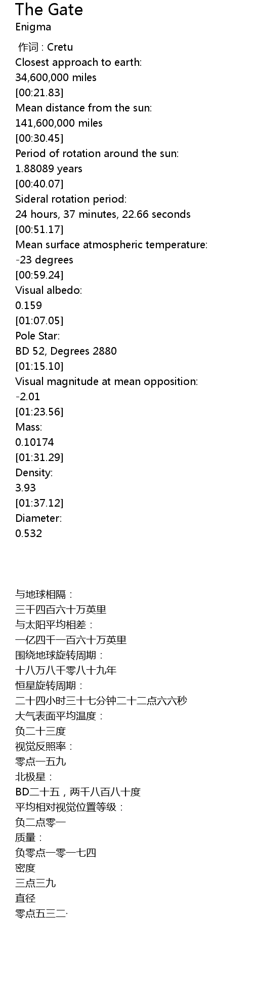 | [01:15.65] | Visual magnitude at mean opposition: |