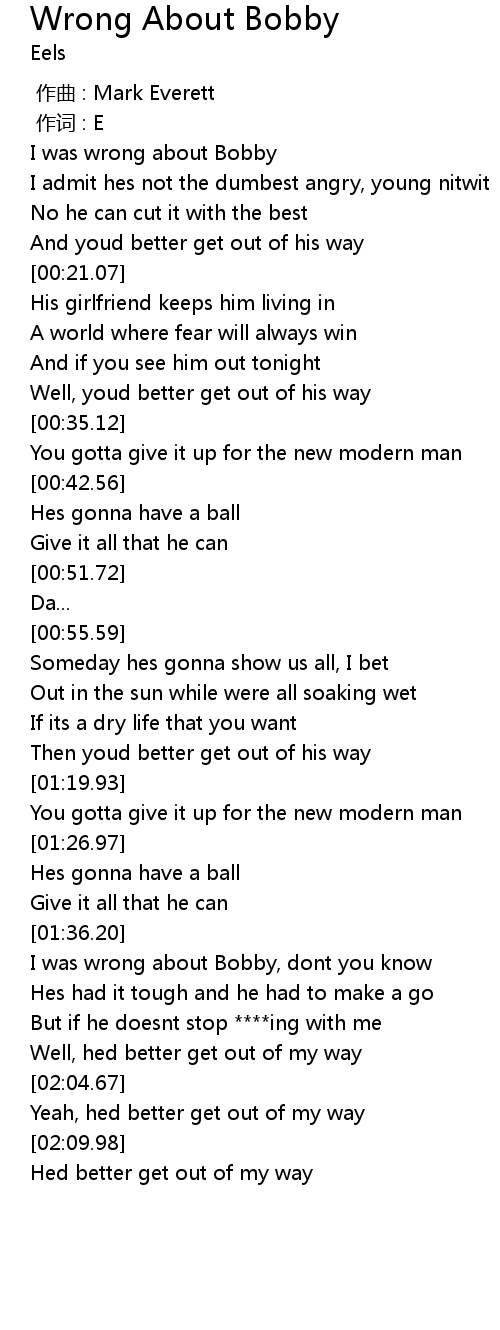 | [01:51.88] | I was wrong about Bobby, dont you know |