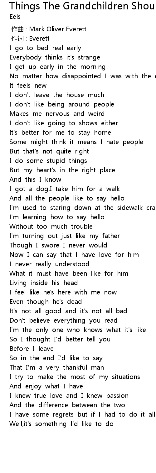 | [00:00.00] | zuo qu : Mark Oliver Everett |