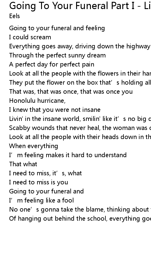 | Going to your funeral and | |