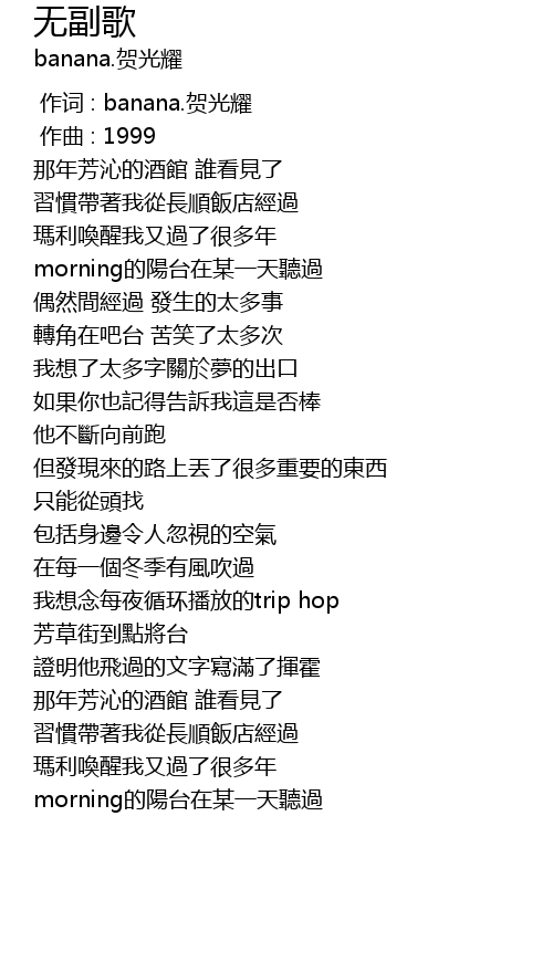 | [00:00.000] | 作词 : banana.贺光耀 |