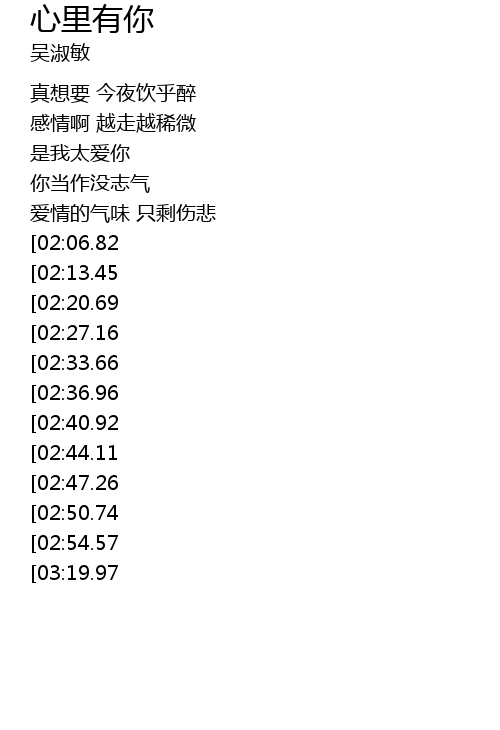 | [01:11.26][02:33.66][03:00.97] | 我的心里只有你 |