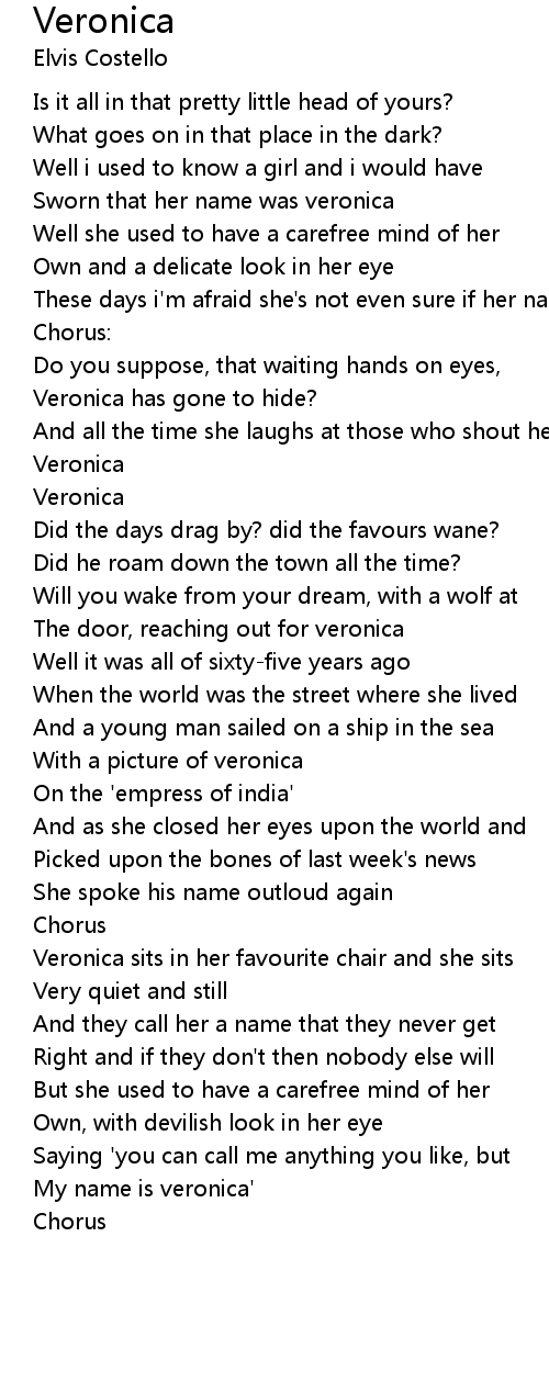 These days i'm afraid she's not even sure if her name is veronica |