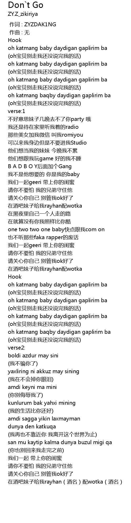 | [00:13.457] | oh bao bei bie zou wo hai mei shuo wan wo de hua |