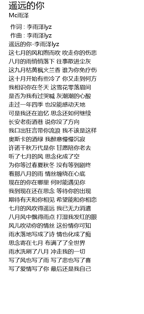 | [00:16.284] | 遥远的你-李雨泽lyz |