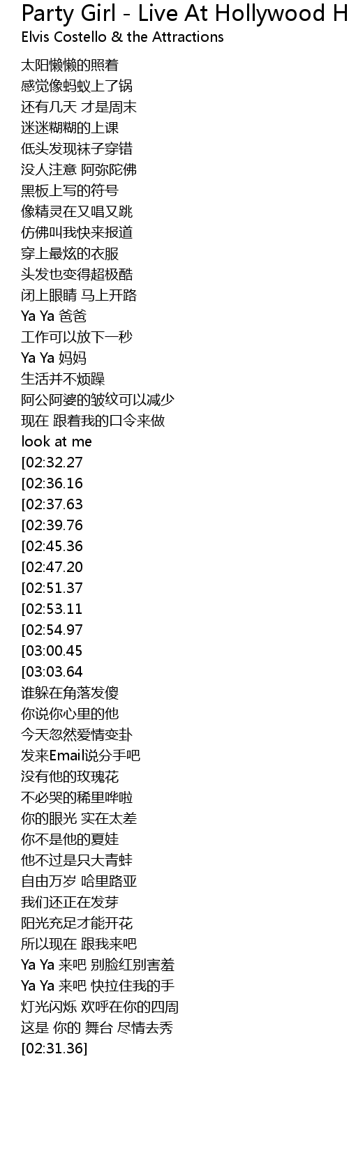 | [02:17.14] | Ya Ya 来吧 别脸红别害羞 |
