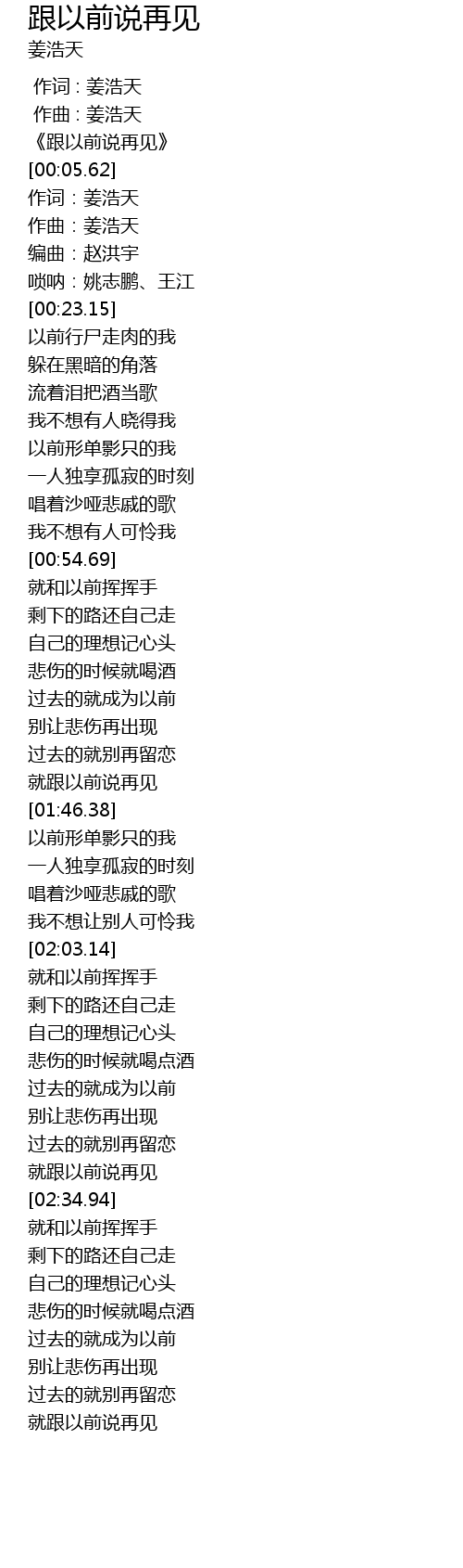 | [02:32.410] | jiù gēn yǐ qián shuō zài jiàn |
