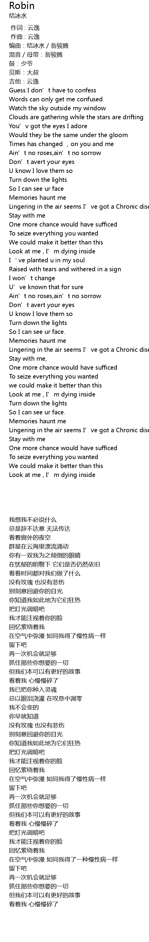 | [01:50.47] | Lingering in the air seems I’ve got a Chronic disease |