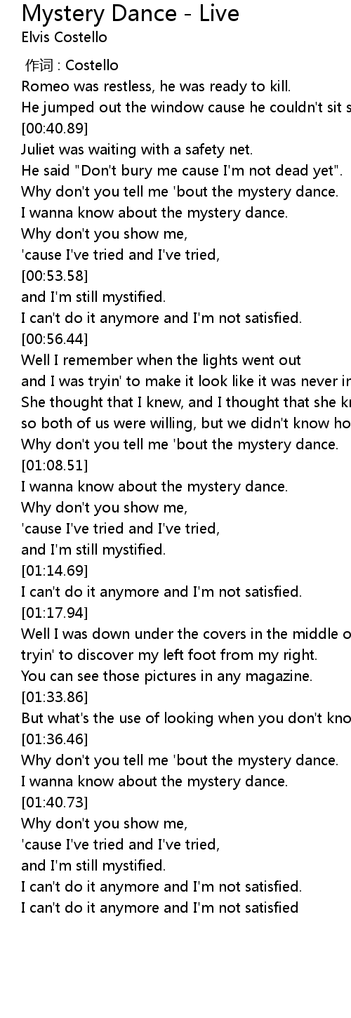 | [01:37.41] | Why don't you tell me 'bout the mystery dance. |