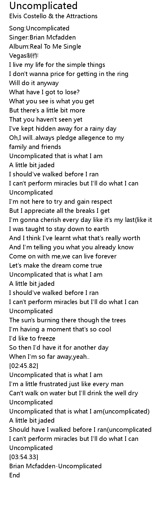 | [03:29.24] | Uncomplicated that is what I am uncomplicated |