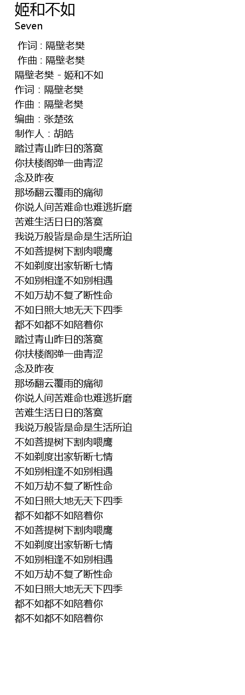 | [00:04.71] | 隔壁老樊 - 姬和不如 |