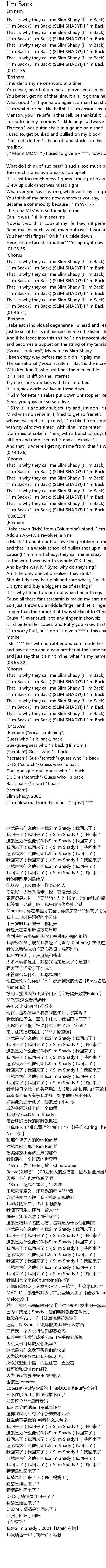 | [01:33.72] | I m Back I m Back SLIM SHADY! I m Back |