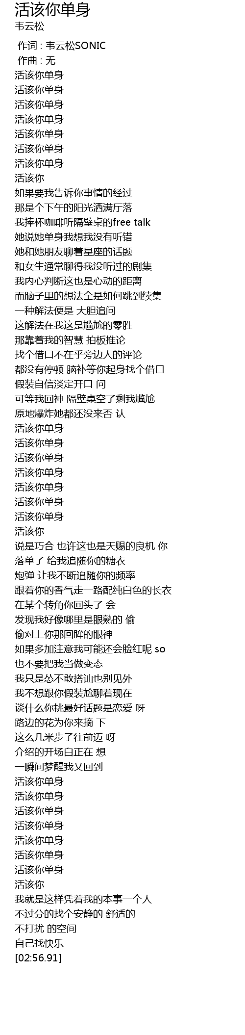| [02:23.91] | huó gāi nǐ dān shēn |