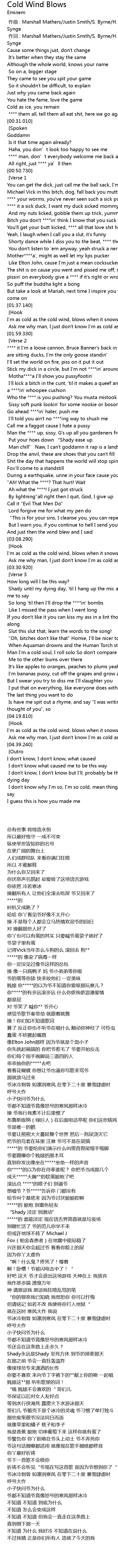 | [01:22.730] | Like Elton John, cause I' m just a mean cocksucker |