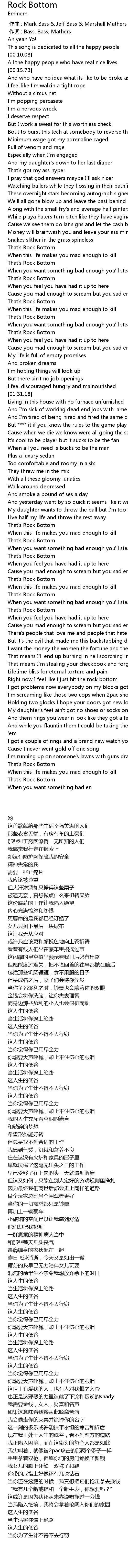 | [00:00.00] | 作曲 : Mark Bass & Jeff Bass & Marshall Mathers |