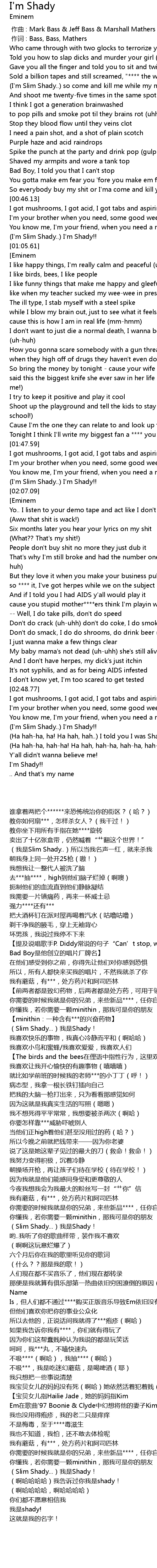 | [00:15.81] | I' m Slim Shady.. so come and kill me while my name' s hot |