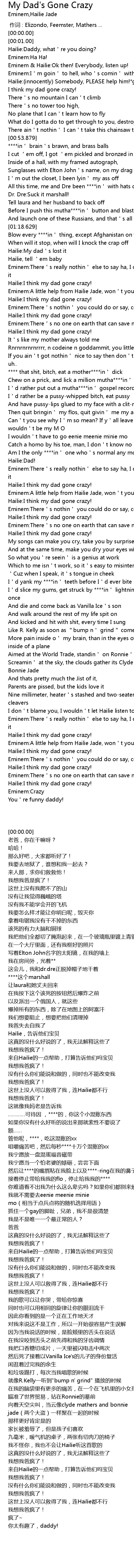 | [02:51.500] | Eminem:There's no one on earth that can save me, not even Hailie |