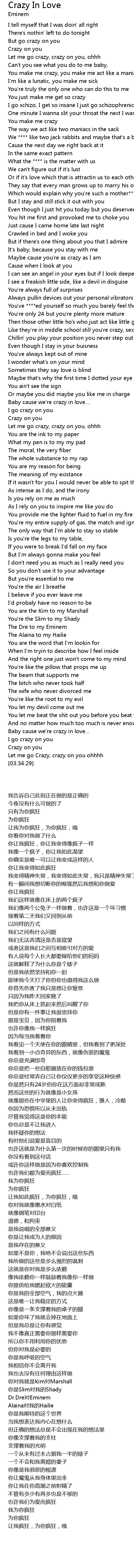 | [01:56.66] | Baby cause we're crazy in love.... |