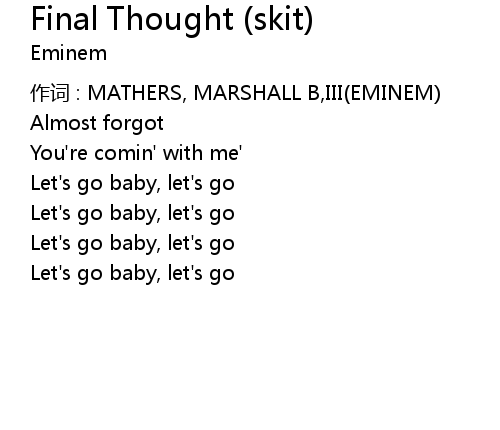 | 作词 : MATHERS, MARSHALL B,III(EMINEM) | |
