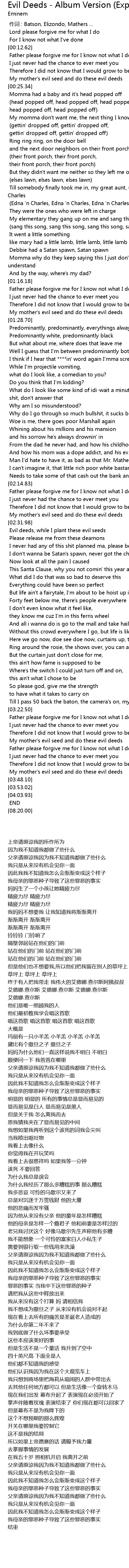 | [02:32.33] | Evil deeds, while I plant these evil seeds |