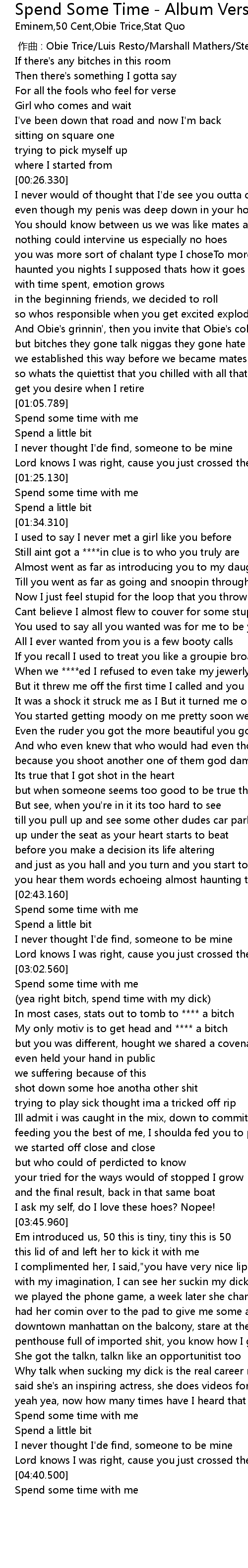 | [00:00.00] | 作曲 : Obie Trice/Luis Resto/Marshall Mathers/Steve King |
