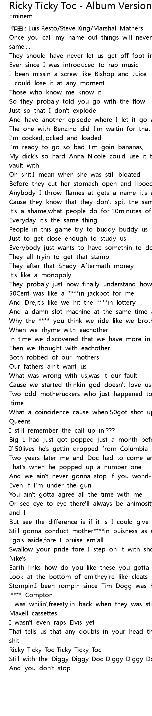 | [00:00.00] | 作曲 : Luis Resto/Steve King/Marshall Mathers |