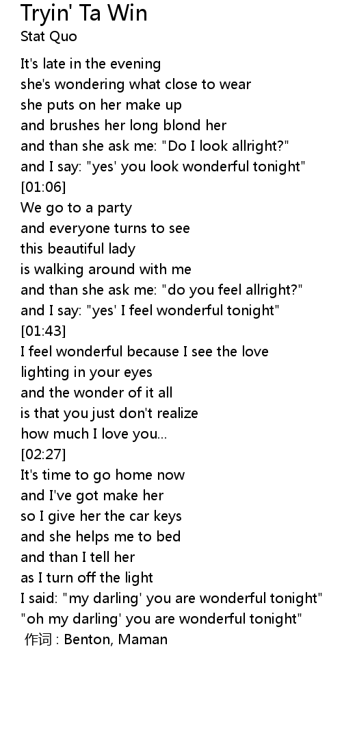 | [03:06] | " oh my darling' you are wonderful tonight" |