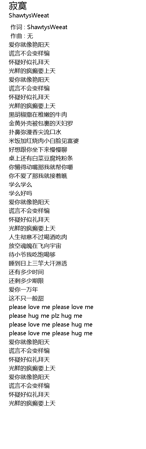 | [00:00.000] | 作词 : ShawtysWeeat |