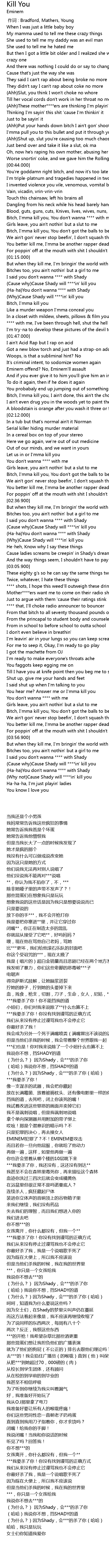 | [02:44.000] | (Cause why)Cause Shady will ****in' kill you |