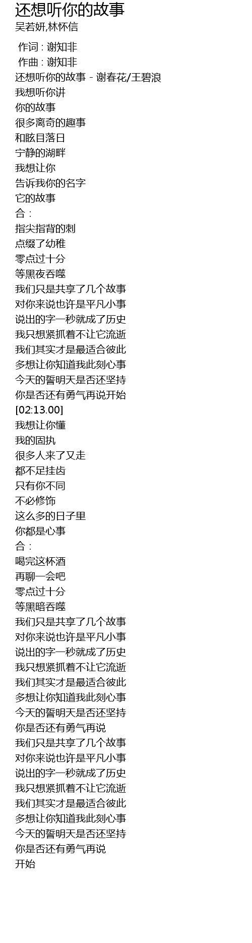 | [00:01.28] | 还想听你的故事 - 谢春花/王碧浪 |