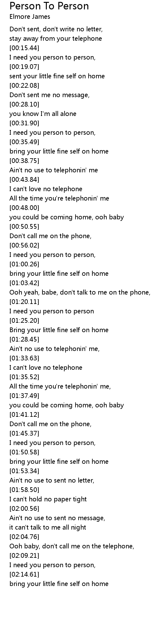 I need you person to person, |