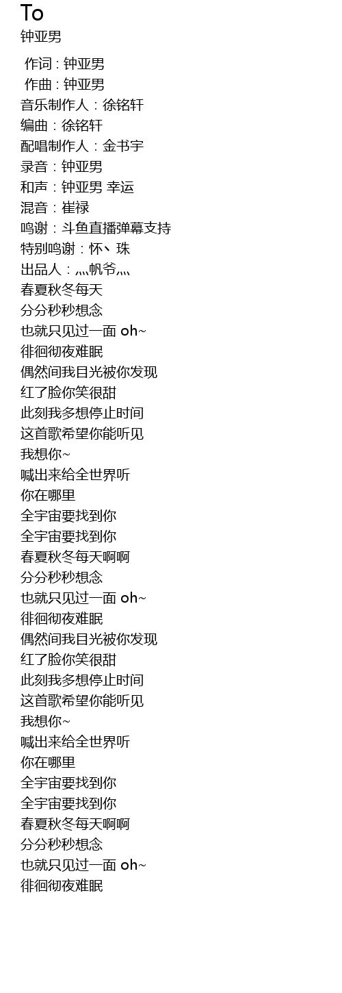 | [00:17.383] | 鸣谢:斗鱼直播弹幕支持 |