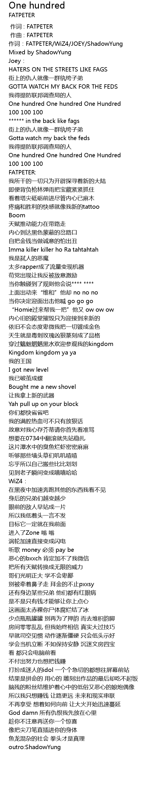 | [00:11.360] | 作词:FATPETER/WiZ4/JOEY/ShadowYung |