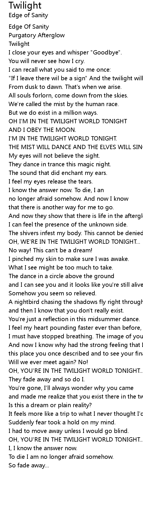 OH I'M IN THE TWILIGHT WORLD TONIGHT |