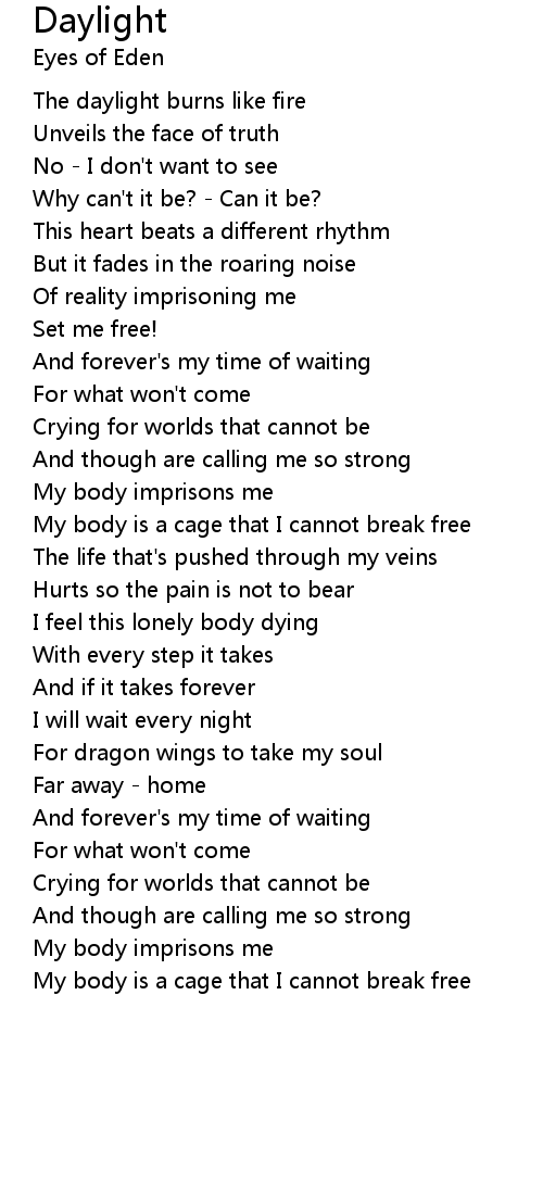 The daylight burns like fire |