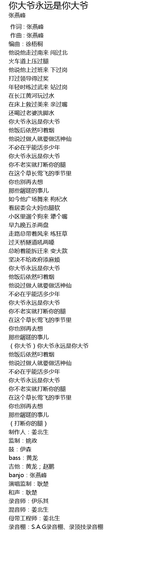 | [02:25.882] | (你大爷)你大爷永远是你大爷 |
