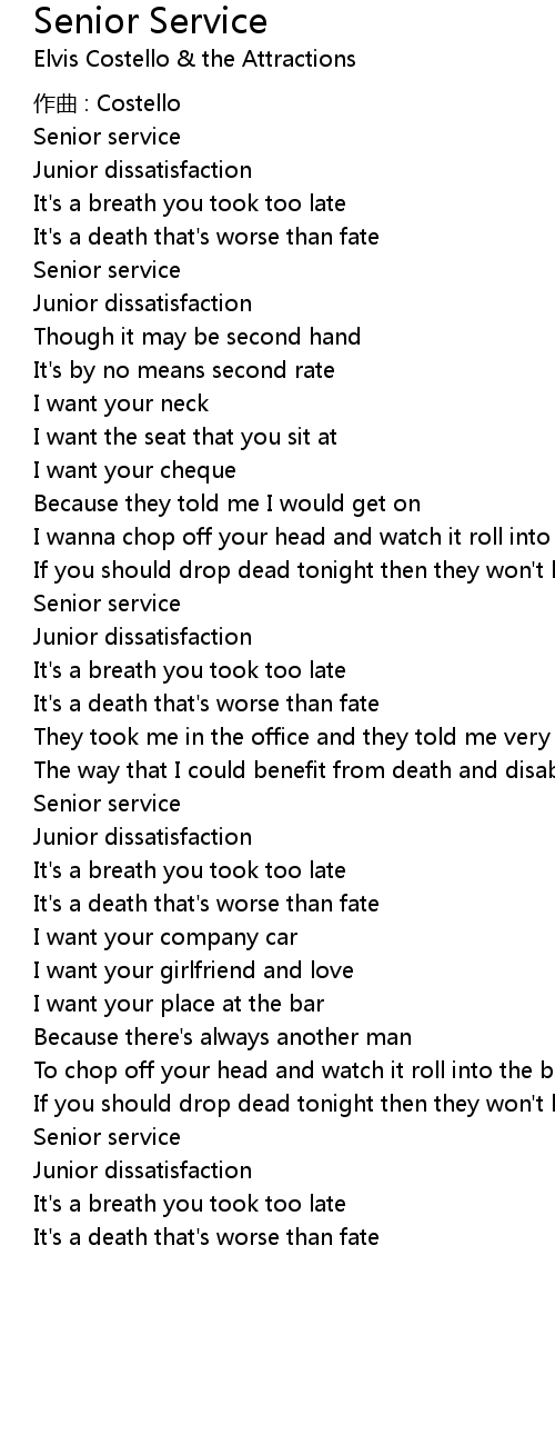 | Song | Senior Service |