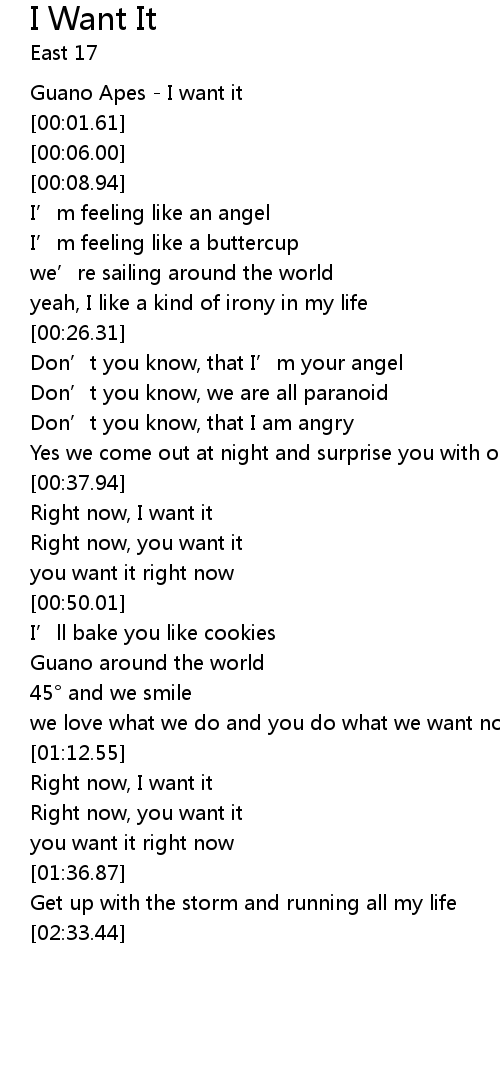 | [00:00.31] | Guano Apes I want it |