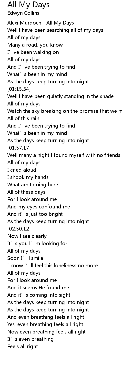 | [00:02.31] | Alexi Murdoch - All My Days |
