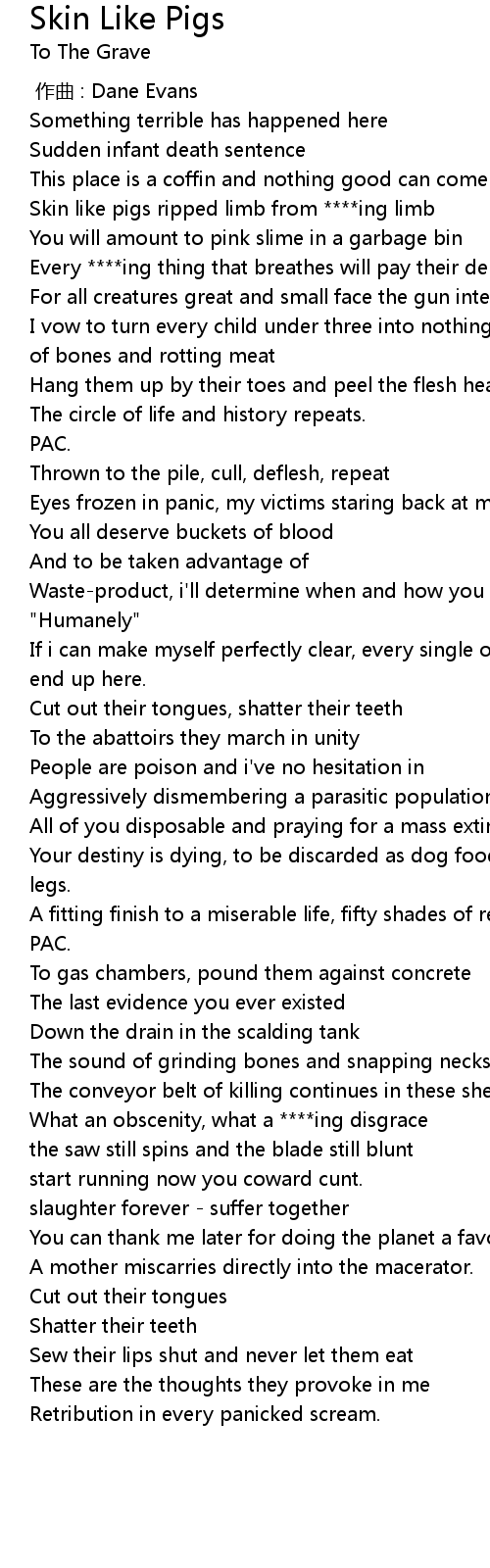 | [00:28.45] | Skin like pigs ripped limb from ****ing limb |